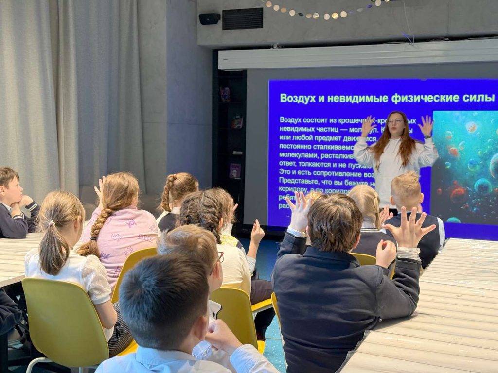 11 февраля в рамках Дней науки, которые Дворец молодёжи проводит в Свердловской области с 1 по 15 февраля, на площадке культурного пространства «Книги, кофе и другие измерения» перед 10–11-летними школьниками выступила педагог Детского технопарка «Кванториум. Верхняя Пышма» Анна Есаулкова с лекцией «Сила, которую не видно. Сопротивление воздуха».