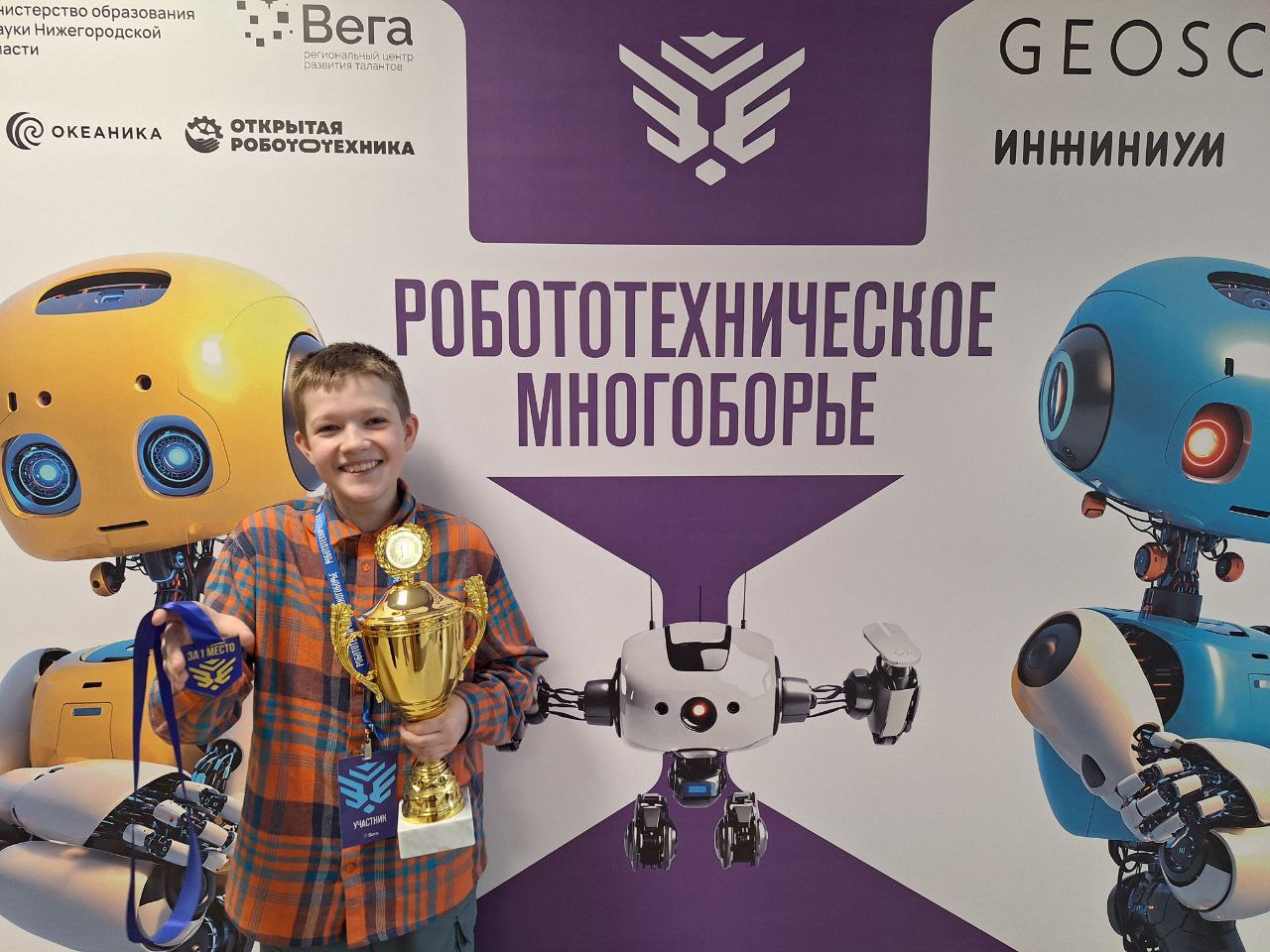 Обучающийся детского технопарка «Кванториум. Верхняя Пышма» Егор Русаков занял первое место во Всероссийских соревнованиях по робототехнике «Робототехническое многоборье — 2025». Его наставницей выступила Татьяна Сергеевна Вохмина.